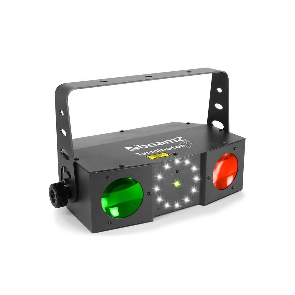 Le Beamz Terminator IV est un Spot LED 3 en 1 génial avec des fonctions impressionnantes : offrez-vous des jeux de lumières magiques avec un seul appareil !