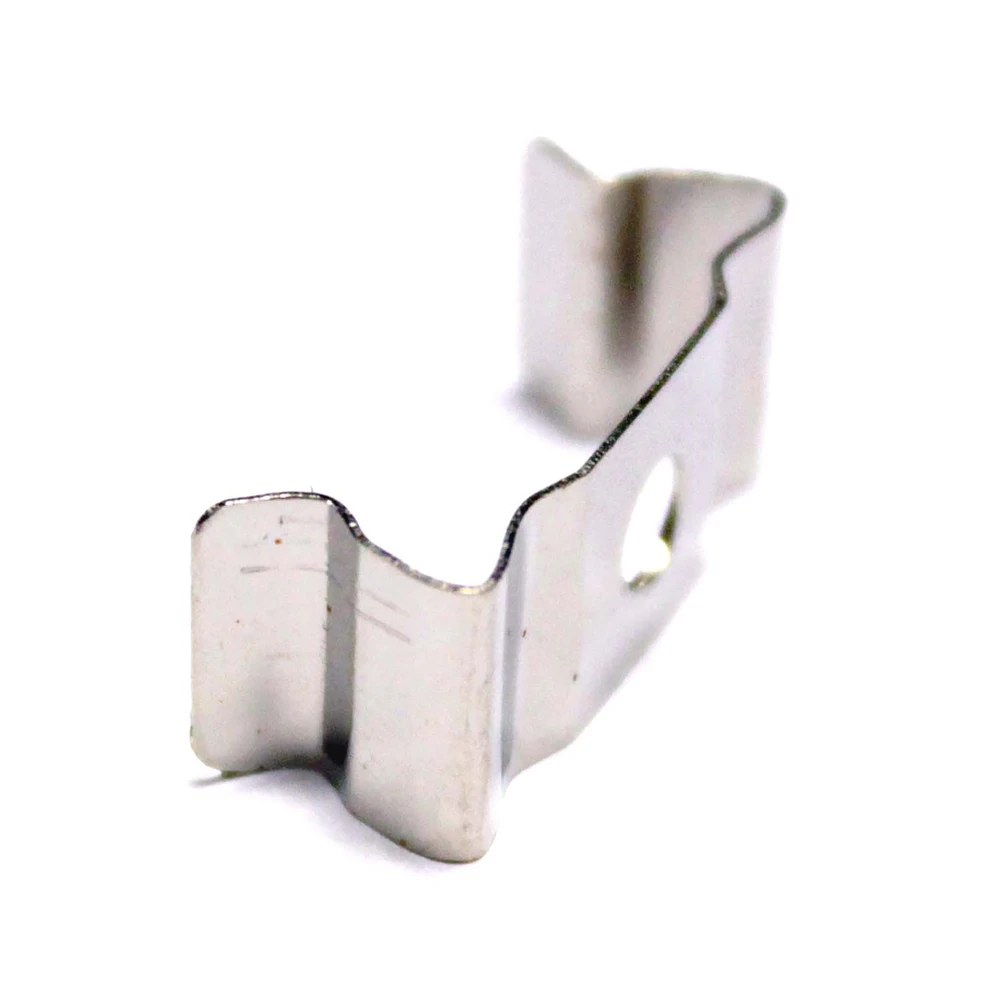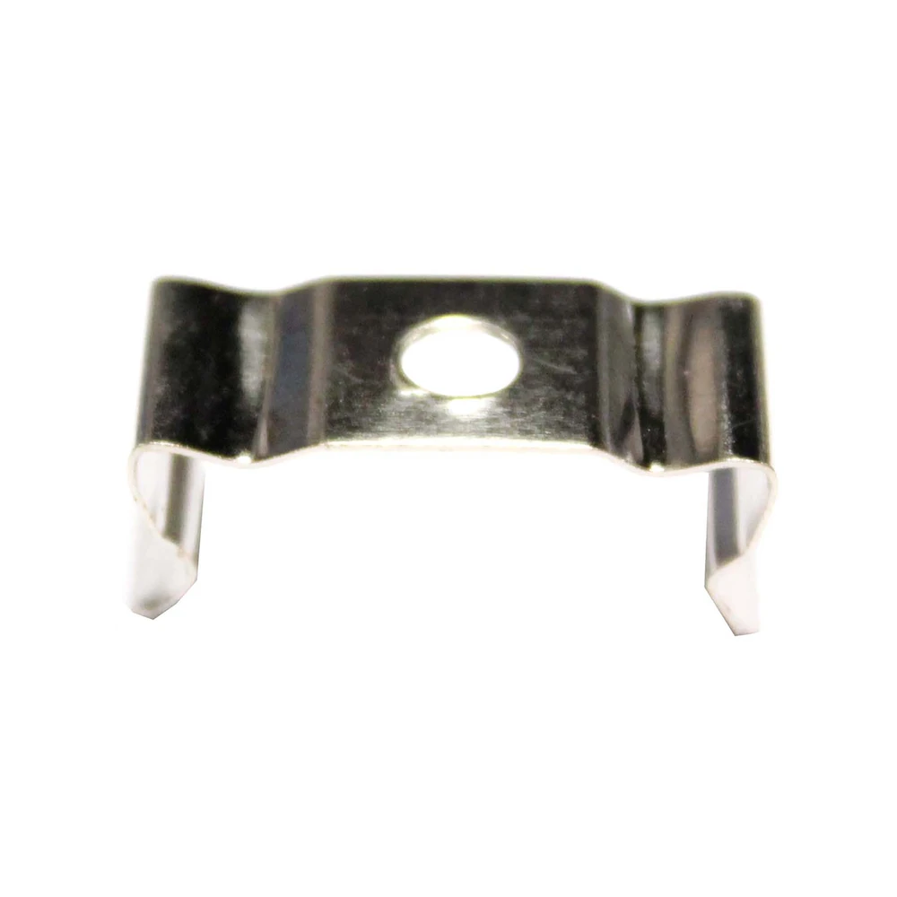 Pince métallique pour fixer un tube LED T5. C’est une agrafe qui facilite l’installation d’un tube T5 sur une surface. Il a un trou central pour la fixation par vis. Le tube LED T5 est fixé à ladite pince.