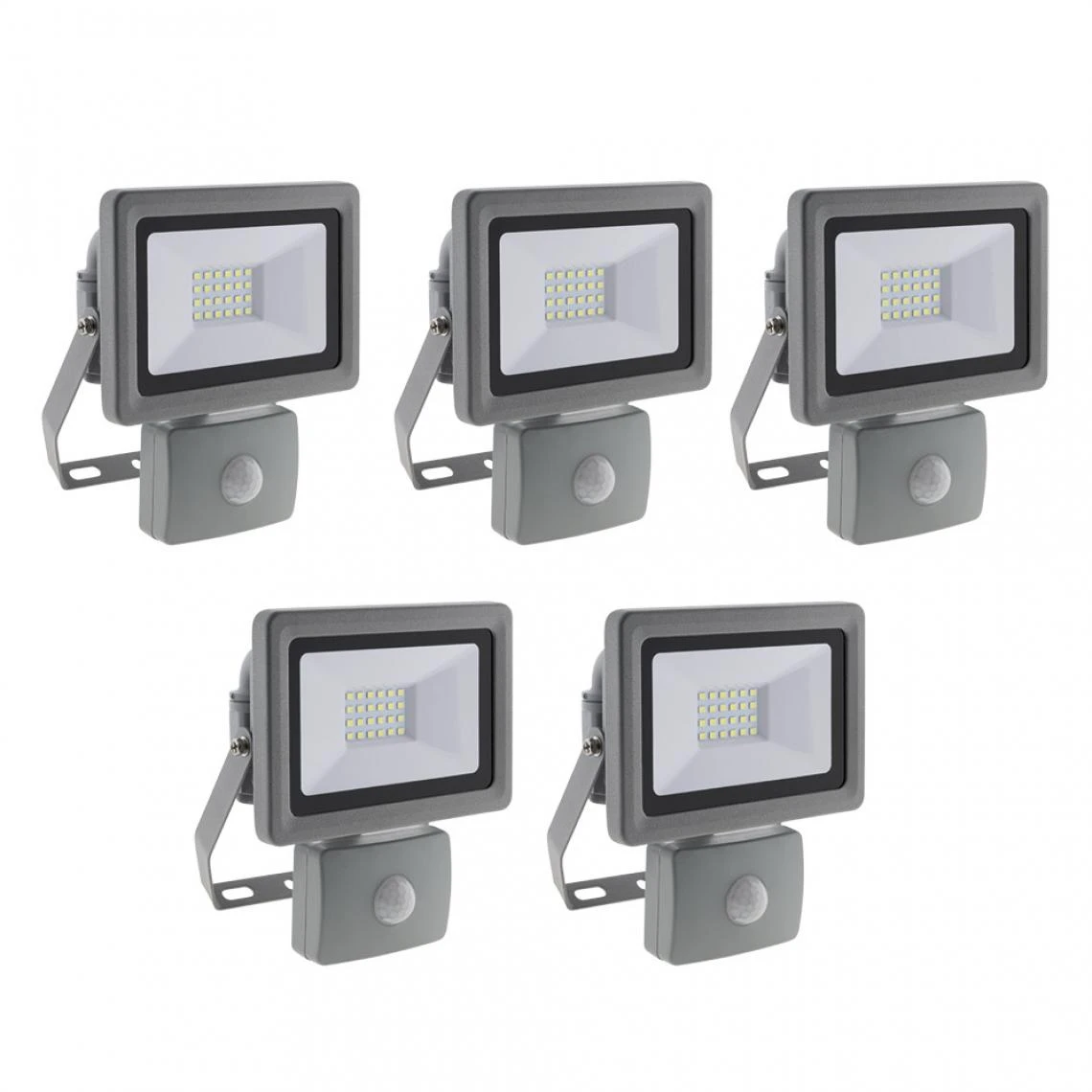 Points forts Elexity Lot de 5 projecteurs LED 20W Gris – Avec détecteur de mouvement – IP44