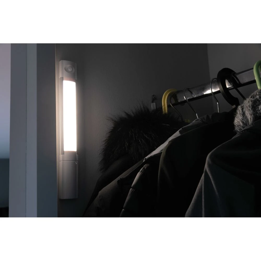 Cette réglette LED rechargeable par USB vous permet d’allumer et d’éteindre automatiquement votre éclairage grâce à son capteur de détection crépusculaire. Grâce à son design sobre et élégant, elle est particulièrement adaptée à une installation dans une cuisine, une salle de bain ou encore dans un dressing. Très simple d’installation, cette réglette LED est dotée d’un support mural et d’aimants intégrés (vis et bandes 3M). Elle ne nécessite donc aucune connexion électrique. Sa batterie amovible lui permet de se recharger sur nimporte quel adaptateur USB traditionnel et lui assure une autonomie de 6h30 en mode ON et 120 jours en mode AUTO. Parmi ses atouts: un capteur de présence et une distance de détection de 3 mètres. Puissance: 1,3W, intensité lumineuse: 50 lumen, température de la lumière: 4000 Kelvin (blanc neutre).