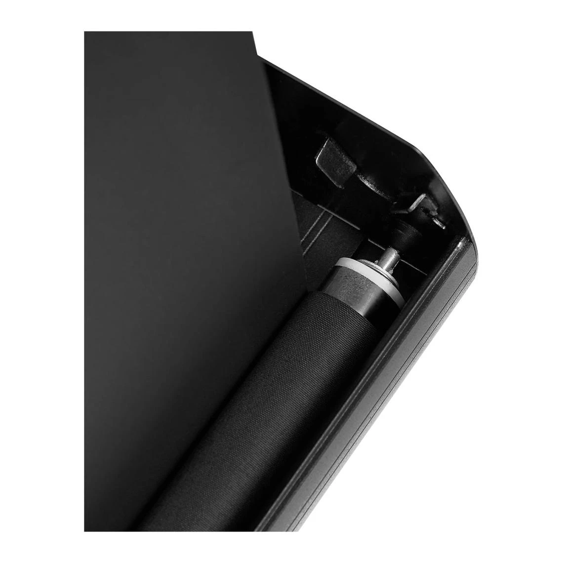 L’écran de projection : pour des résultats lumineux lors des visionnements privés et des présentations Que ce soit pour un home cinéma, une vidéoconférence cruciale, une salle de réunion ou un auditorium universitaire – l’écran de projection sur pied constitue le support de présentation parfait pour les films, les photos et les diaporamas. L’écran portable 4:3 parfait pour votre mobilier de bureau professionnel ou vos soirées cinéma Cet écran pour vidéoprojecteur de 174 x 203 cm possède une diagonale impressionnante de 203 cm (80 pouces) grâce à laquelle il crée une véritable ambiance de cinéma à la maison. Comme il comporte une bordure noire qui renforce le contraste et magnifie fortement le rendu visuel, sa surface de projection utile mesure 122 x 163 cm, ce qui correspond au format 4:3. L’arrière de l’écran étant entièrement noir, la toile est tout à fait opaque et peut être posée n’importe où, y compris devant une fenêtre. Cette toile pour projecteur d’une épaisseur de 0,4 mm se compose de trois couches de PVC. Comparativement aux autres matériaux, le PVC présente l’avantage de fournir une surface non gondolée dès la première utilisation et de ne pas prendre de faux plis. La toile se caractérise en outre par un faible degré de réflexion et un grand angle de vision. Comme elle rend les images sans compromettre la qualité, elle est idéale pour projeter des vidéos haute résolution (Full HD [HD intégrale], Ultra HD [UHD], 4K ou 8K) et fait de chaque film une expérience inoubliable. L’écran de projection autoportant dispose d’un système à ciseaux fonctionnant en douceur avec un mécanisme de levage pneumatique. Il se met en place de façon simple et rapide et peut être déroulé complètement ou jusqu’à une certaine hauteur seulement. Pendant l’utilisation, des pieds intégrés lui fournissent une bonne stabilité afin qu’on puisse le positionner librement dans la pièce. Après le visionnement, la toile pour vidéoprojecteur s’enroule et se range rapidement dans un boitier en aluminium. Équipée d’une poignée et faite de matériaux ultralégers, elle est idéale pour l’utilisation nomade ou occasionnelle. Grand format – très grande diagonale de 80 pouces (203 cm) qui crée une véritable ambiance de cinéma dans le confort de votre foyer Rapidité – montage aisé à l’aide d’un système à ciseaux avec mécanisme de levage pneumatique Durabilité – toile trois couches, blanc mat, en PVC Confort – déploiement et enroulement automatiques au moyen d’un système à ciseaux avec mécanisme de levage pneumatique Mobilité – facile à utiliser, peu encombrant et rangeable dans un boitier en aluminium sûr avec poignée Couleur(s) Noir, Blanc Taille [ ] 80 Format 4:3 Taille de l’image [mm] 1220*1630 Taille de l’écran [mm] 1740 * 2030 Matériau(x) Toile : PVC (3 couches) Installation Au sol Mécanisme de réglage de hauteur Système à ciseaux avec mécanisme de levage pneumatique Matériau du boîtier Aluminium Épaisseur du matériau [mm] 0,4 Dimensions (LxlxH) [cm] 175.5 x 17 x 14 Poids [kg] 10.25 Dimensions de l’envoi (LxlxH) [cm] 180.6 x 18 x 15 Poids de l’envoi [kg] 11.45 Contenu de la livraison Écran de projection sur pied Manuel d’utilisation La livraison inclut-elle un étui de transport ? Non, le produit dispose d’une poignée qui le rend facile à transporter. Faut-il déployer l’écran entièrement à chaque utilisation ? Non, vous pouvez ajuster la hauteur selon vos besoins. Peut-on monter cet écran au plafond ? Non, ce modèle se pose au sol. Il ne peut pas être monté au plafond.