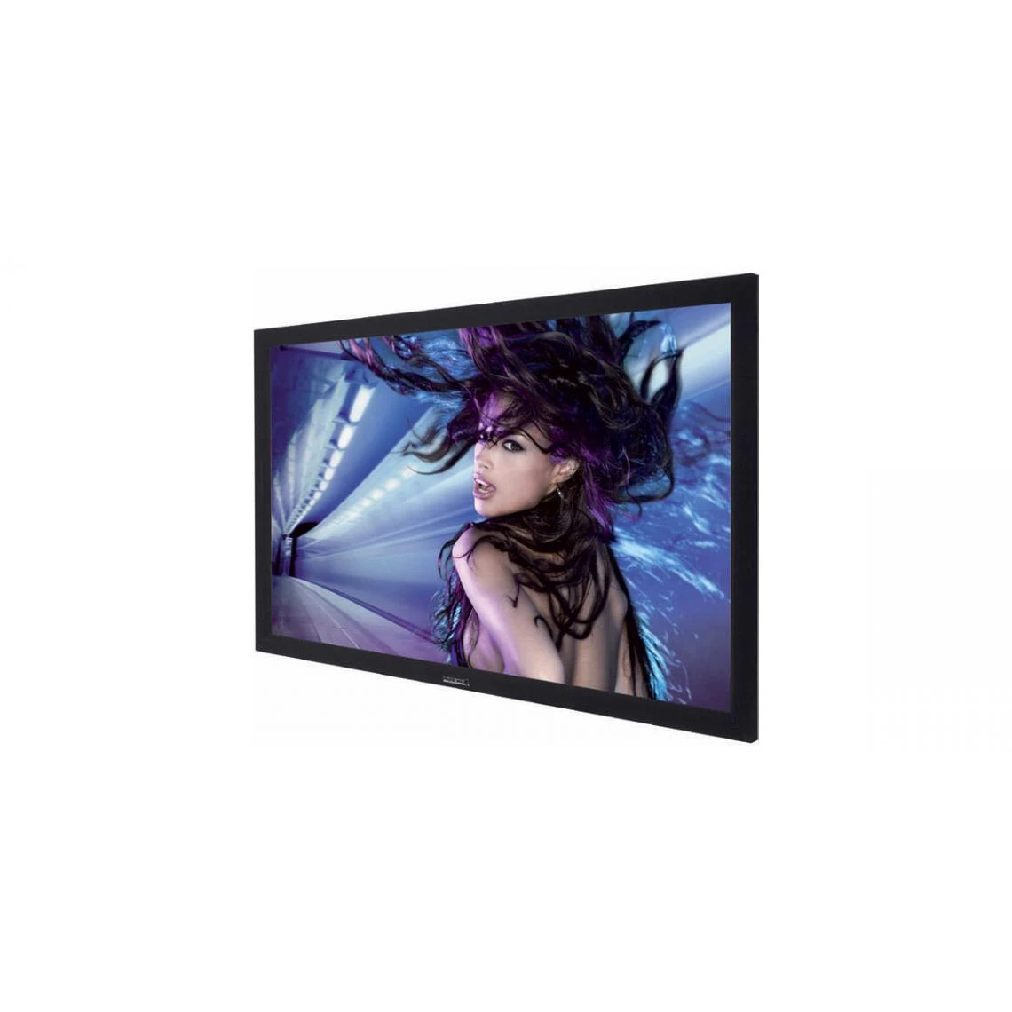 L’écran de projection Movie Palace UHD 4K/8K Platinum du fabricant français Lumene est un modèle fixe à installer sur un mur qui est doté d’une toile spécifiquement développée pour utiliser un vidéoprojecteur UHD-4K et 8K. Lumene Movie Palace UHD 4K/8K Platinum : Une toile aux technologies de haut vol La toile de l’écran Lumene Movie Palace UHD 4K/8K Platinum est fabriquée en PVC souple. A la différence avec les toiles HD des écrans de la même marque la surface de la toile UHD 4K/8K est quant à elle recouverte de micro perles structurées en diamant permettant une réflexion parfaite de l’image 4K/8K. La couche inférieure blanche a une température de couleur de 6000 Kelvin et la différence entre la lumière réfléchie et celle de la pièce est inférieure à 60 Kelvin. Le résultat sur la toile est un reflet pur, extrêmement détaillé, fidèle à l’image originale projetée. De plus, la toile UHD4K/8K Platinum présente un gain de 1,3 contrairement à celle du l’UHD 4K qui est de 1,0. Cette toile technique de dernière génération renvoie donc plus intensément la lumière absorbée, permettant à chaque détail d’être restitué avec plus de précision ! Movie Palace UHD 4K/8K Platinum : une toile bien tendue avec le système de fixation multipoint La toile est solidement attachée au cadre via un système de fixation multipoint permettant une tension parfaite. Cela garantit une surface plane pour une projection optimisée ! De plus, elle est traitée anti-jaunissement, anti-gondolement et anti-poussière lui permettant ainsi de résister dans le temps Les rebords noirs (le cadre en aluminium et velours noir) qui entourent la toile blanche améliorent le niveau de contraste perçu ! La directivité de 130° offre aux spectateurs décentrés les mêmes paramètres de visionnage que les spectateurs assis au centre. L’écran de projection fixe de Lumene est facile à installer puisqu’il intègre un système de fixation par clips simple à mettre en œuvre.