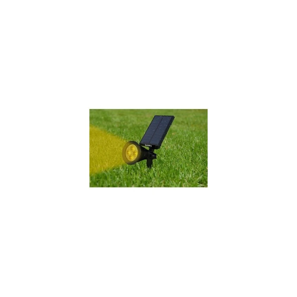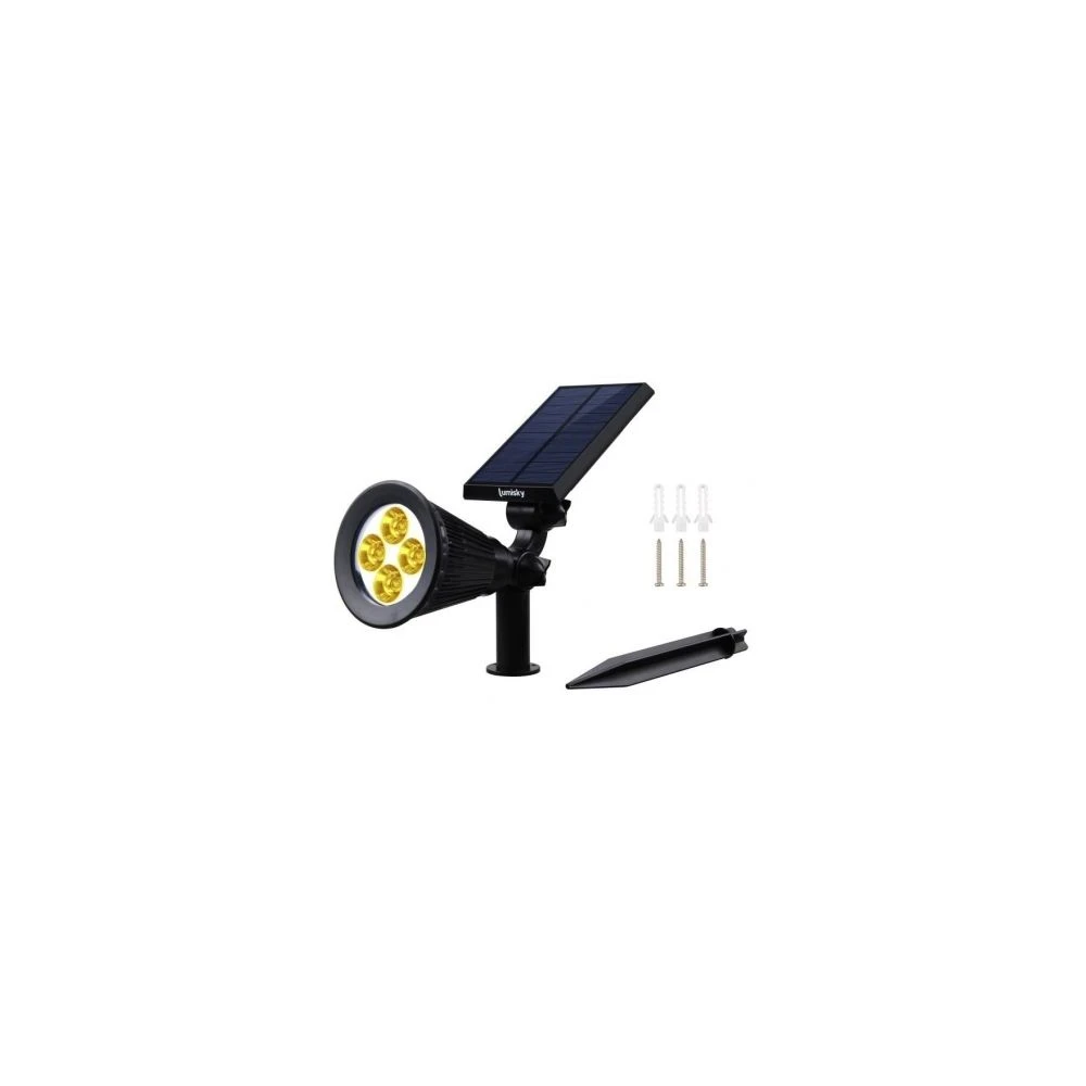 4 LED extra puissante – 200 Lumens – S’allume sous l’action du détecteur crépusculaire – Temps de recharge 4 a 5 h – Autonomie 8-10 h – 100% étanche, résiste aux rayons UV et aux températures extremes – Batterie lithium 18650 haute performance 3.7V/2200mAh – 2 en 1: a piquer ou a planter au sol – 2 modes d’éclairageCaractéristiques :