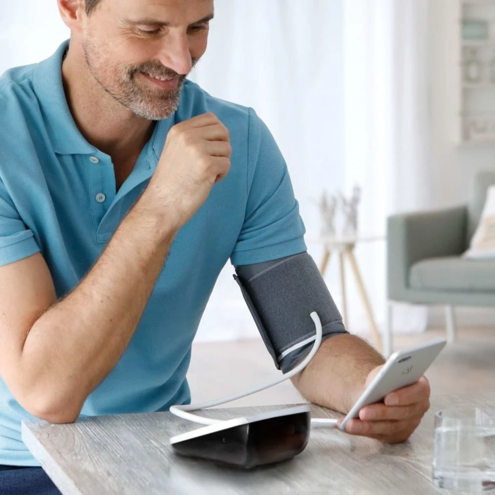 Avec le tensiomètre BU 546 CONNECT de la marque Medisana, vous pouvez surveiller la tension artérielle à domicile et gérer votre santé. Ce dispositif médical vous permet de mesurer avec précision la pression artérielle, et il vous alerte même en cas d’arythmie cardiaque. Le tensiomètre dispose de 250 emplacements de mémoire pour chacun des 2 utilisateurs et d’un grand écran facile à lire qui montre clairement cinq valeurs différentes. De plus, toutes les valeurs mesurées sont classées selon les évaluations de l’Organisation mondiale de la santé (OMS) en utilisant l’échelle de couleurs des feux de signalisation. À l’aide de la transmission de données intelligente Bluetooth vers l’application VitaDock pour iOS et Android et vers VitaDock Online, les résultats peuvent être facilement analysés et évalués à tout moment. Le tensiomètre fonctionne sur 4 piles AAA de 1,5 V, incluses dans la livraison.