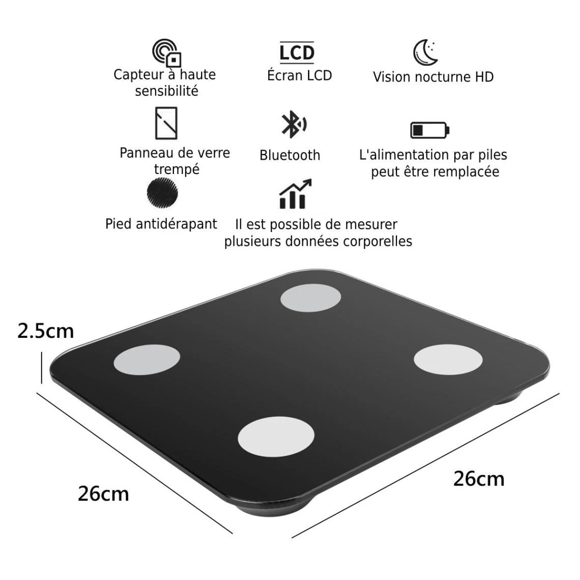 | • BALANCE NUMERIQUE BLUETOOTH • Grâce a l’application, vous pouvez suivre votre poids à l’aide de graphiques. |