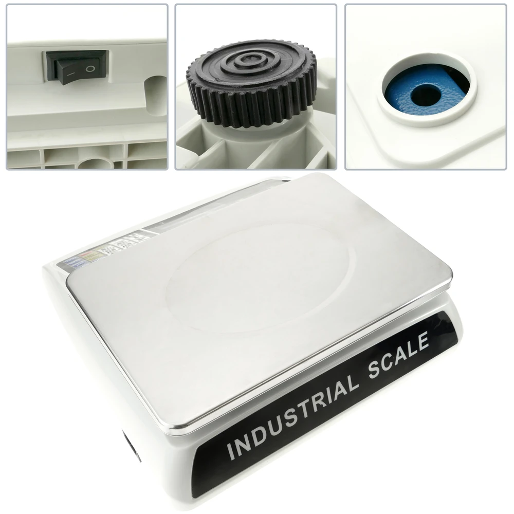 - Plate-forme en acier inoxydable, taille 300 x 205 mm. Taille de l’échelle (largeur x profondeur x hauteur): 327 x 322 x 105 mm.