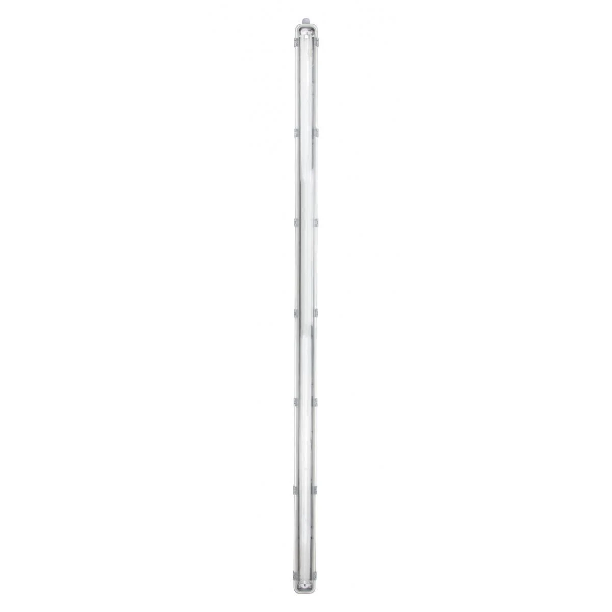 Cette réglette étanche LED est particulièrement recommandée pour une installation en extérieur ou dans un endroit propice aux variations climatiques (abri, garage, dépendance, etc.) Elle dispose de nombreux atouts dont un tube LED intégré (culot G13) et vous garantit une durée de vie de 30 000 heures, soit environ 3 heures par jour pour 25 ans. Conçue en polycarbone, la vasque se distingue par une haute résistance. Facile à monter et à installer, cette réglette LED d’extérieur se caractérise par un indice de protection IP65, ce qui lui permet de résister sans problème à l’humidité ou aux changements de température. Caractéristiques : Puissance : 24 W, Culot : G13, 1900 lumens, Température : 4000 k, Classe énergétique : A+, Étanchéité : IP65, Dimensions : 62 x 665 x 60 mm, Vasque haute résistance.