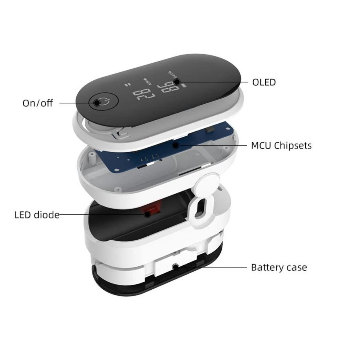 Notre oxymètre permet de calculer de manière fiable et précise (normes EU) les pulsations cardiaques ainsi que la saturation d’oxygène dans le sang, également appelée “SpO2”.