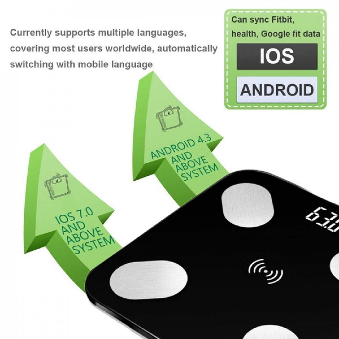 26 * 26 cm Scale de graisse corporelle Smart BMI Échelle LED de salle de bain numérique Balance sans fil Balance BLUETOOTH APP Android iOS
