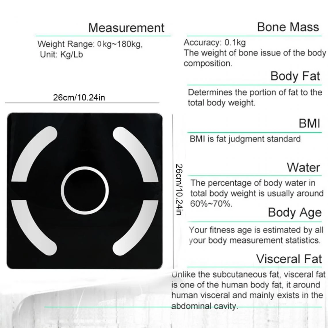Échelle de graisse corporelle Bluetooth BMI Balances Accessoires de salle de bains Ménage Mesure Balances de poids électronique | Écailles de la salle de bain (Blanc)