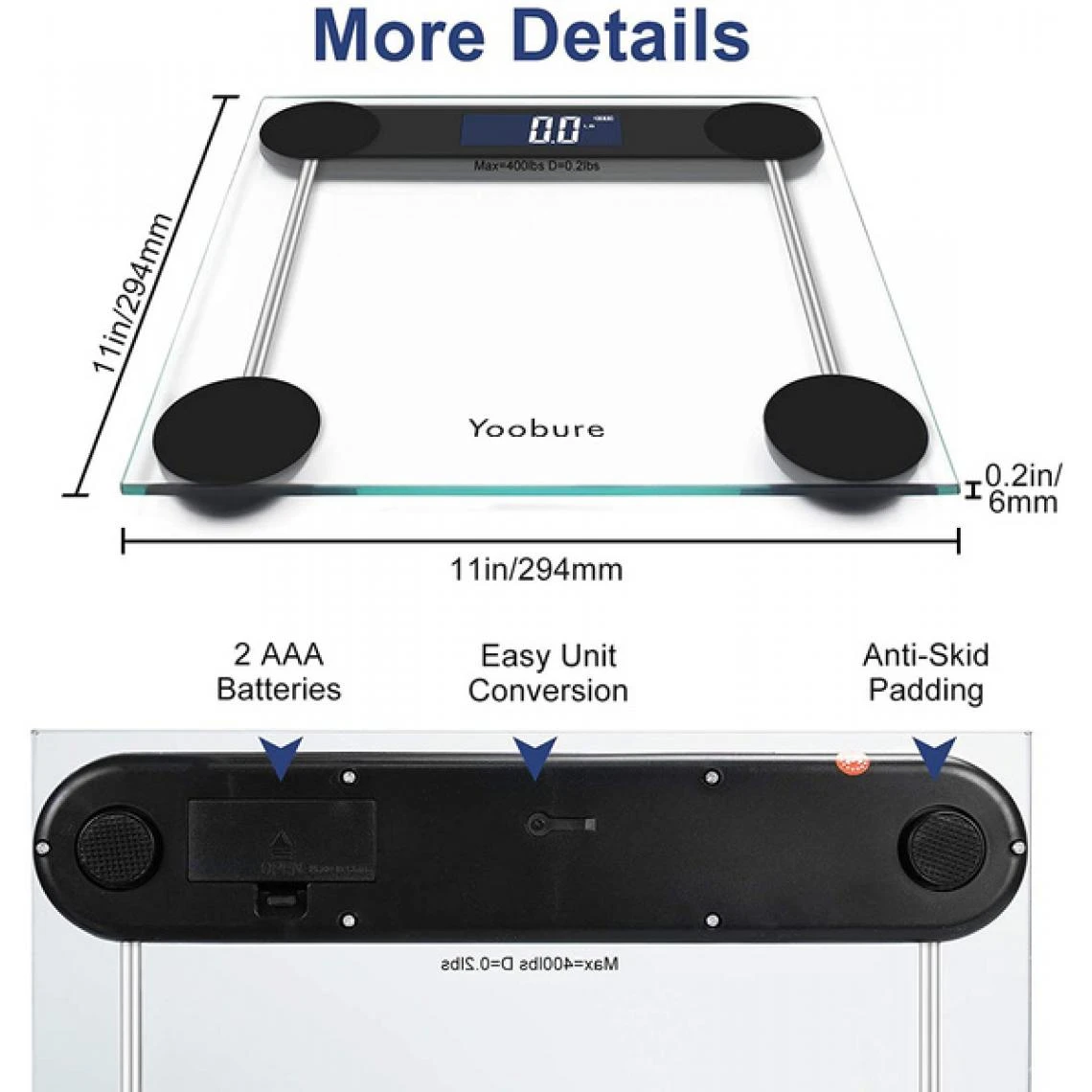 Sécurité et amplis;Confort: Plate-forme de verre trempé transparente offre une robustesse exceptionnelle;Grande plate-forme de 11 “x 11”, écran LCD clair pour votre convivialité.
