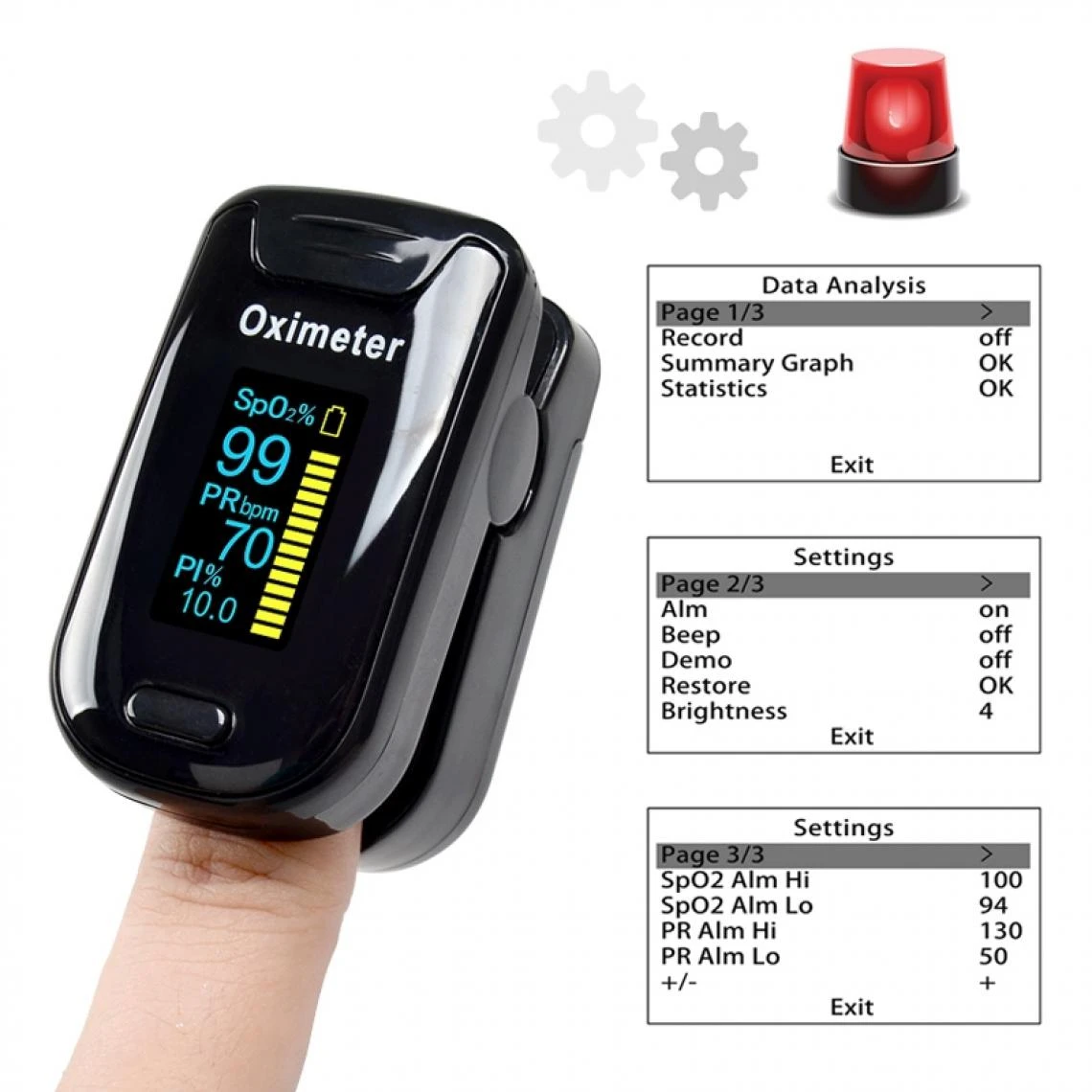 Tensiomètre Oxymètre de pouls à saturation en oxygène au bout des doigts avec affichage à DEL (vert)