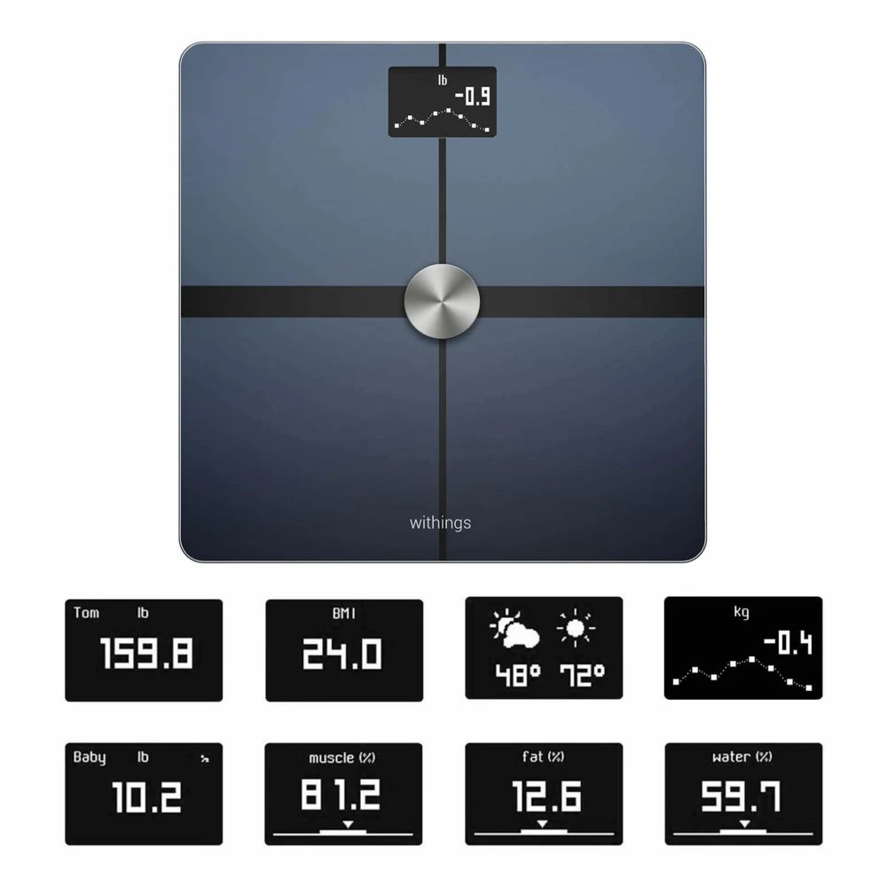 Balance connectée Withings Body+ : permet de fixer et atteindre des objectifs en se synchronisant avec Health Mate. Analyse de composition corporelle. Courbe d’évolution. Supporte jusqu’à 8 utilisateurs. Mode bébé et grossesse. Bulletin météo..