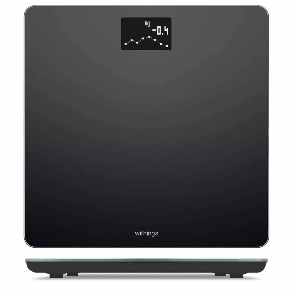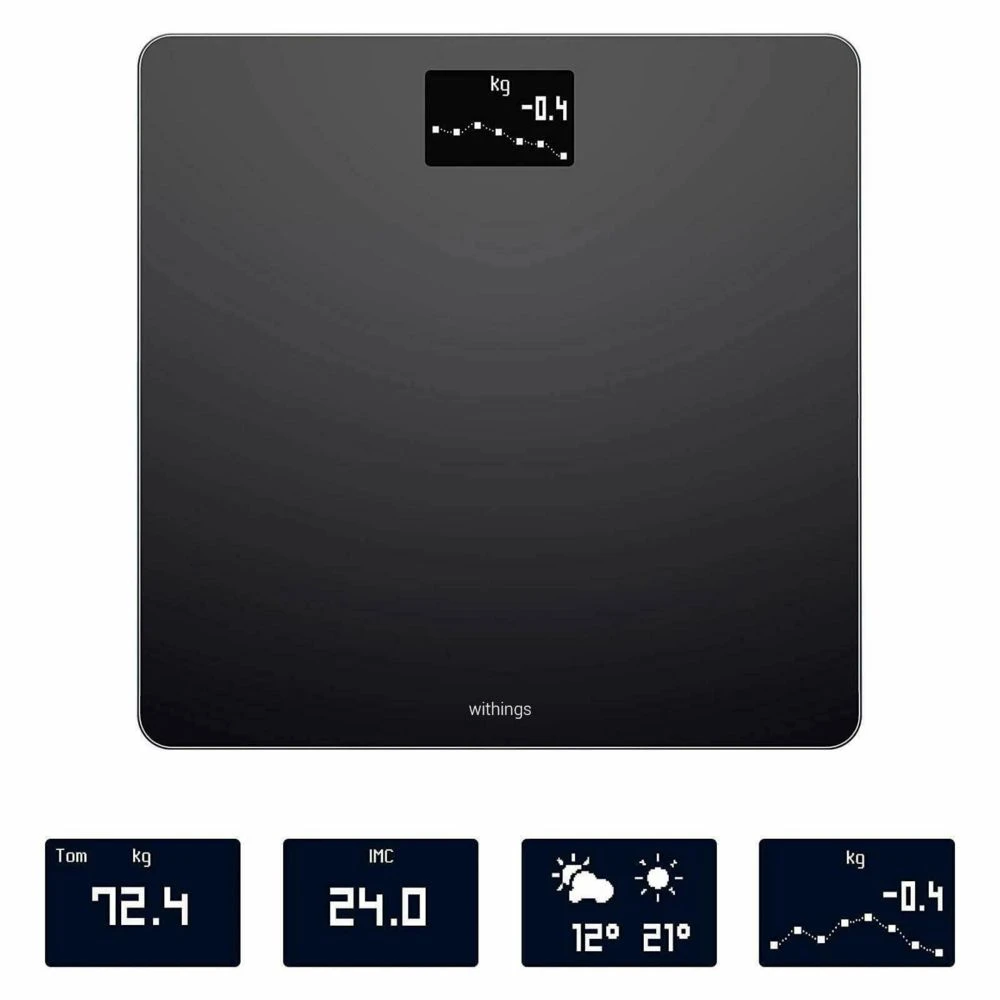 Balance connectée Withings Body : permet de fixer et atteindre des objectifs en se synchronisant avec Health Mate. Courbe d’évolution. Supporte jusqu’à 8 utilisateurs. Mode bébé et grossesse. Bulletin météo. Fournit des conseils et astuces personnels.